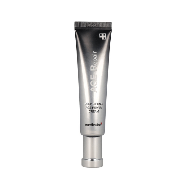 La Deep Lifting Age Repair Cream de Medicube es una crema facial antiedad de origen coreano diseñada para reafirmar, reparar y rejuvenecer la piel con un efecto lifting visible. Su fórmula avanzada combina péptidos, colágeno, ceramidas y niacinamida para mejorar la elasticidad, suavizar arrugas y fortalecer la barrera cutánea.